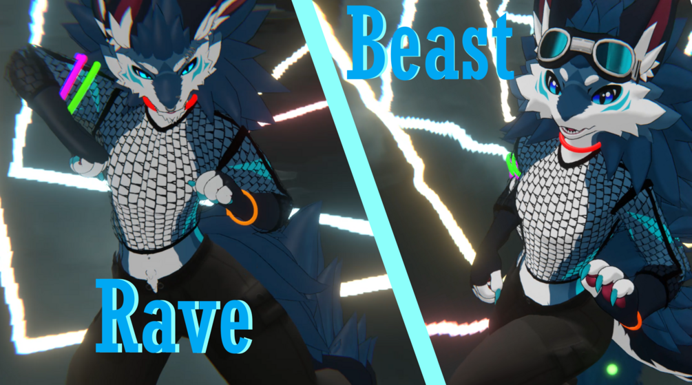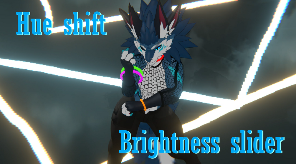 Get your Novabeast ready for your local club! This asset features built in hue shift using Poiyomi toon shaders, no need to retexture!